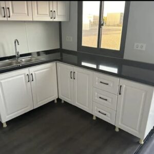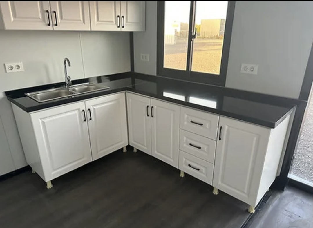 – Cocina: Una zona de cocina funcional con armarios superiores, optimizando el espacio para la preparación de comidas.